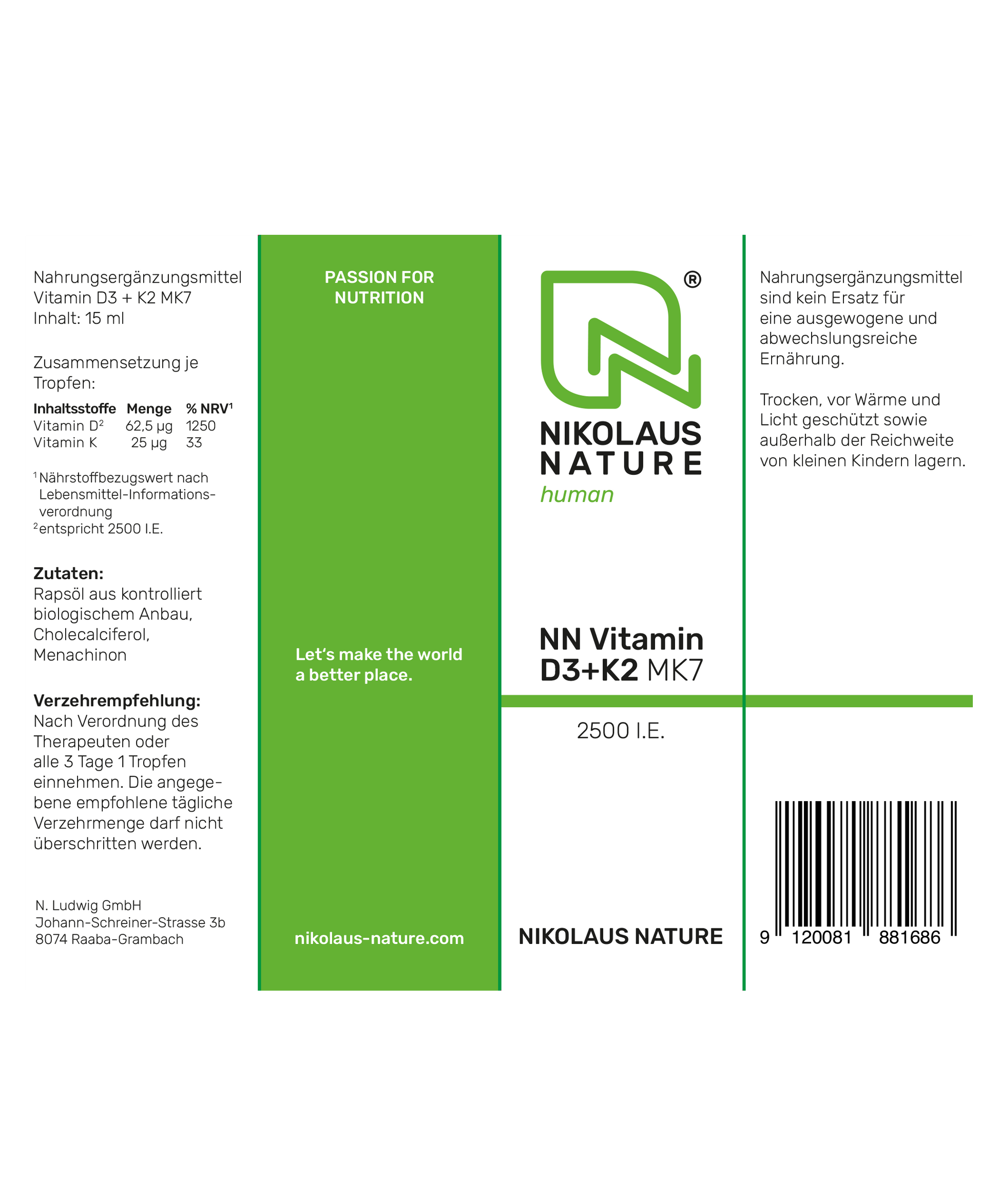 The vitamin K2 contained in NN Vitamin D3 + K2 is in the MK7 form (menaquinone-7). This form is particularly bioavailable and remains active in the body longer – a real advantage for a continuous supply. Targeted supplementation can be particularly beneficial for vegetarians or those low in fermented foods.