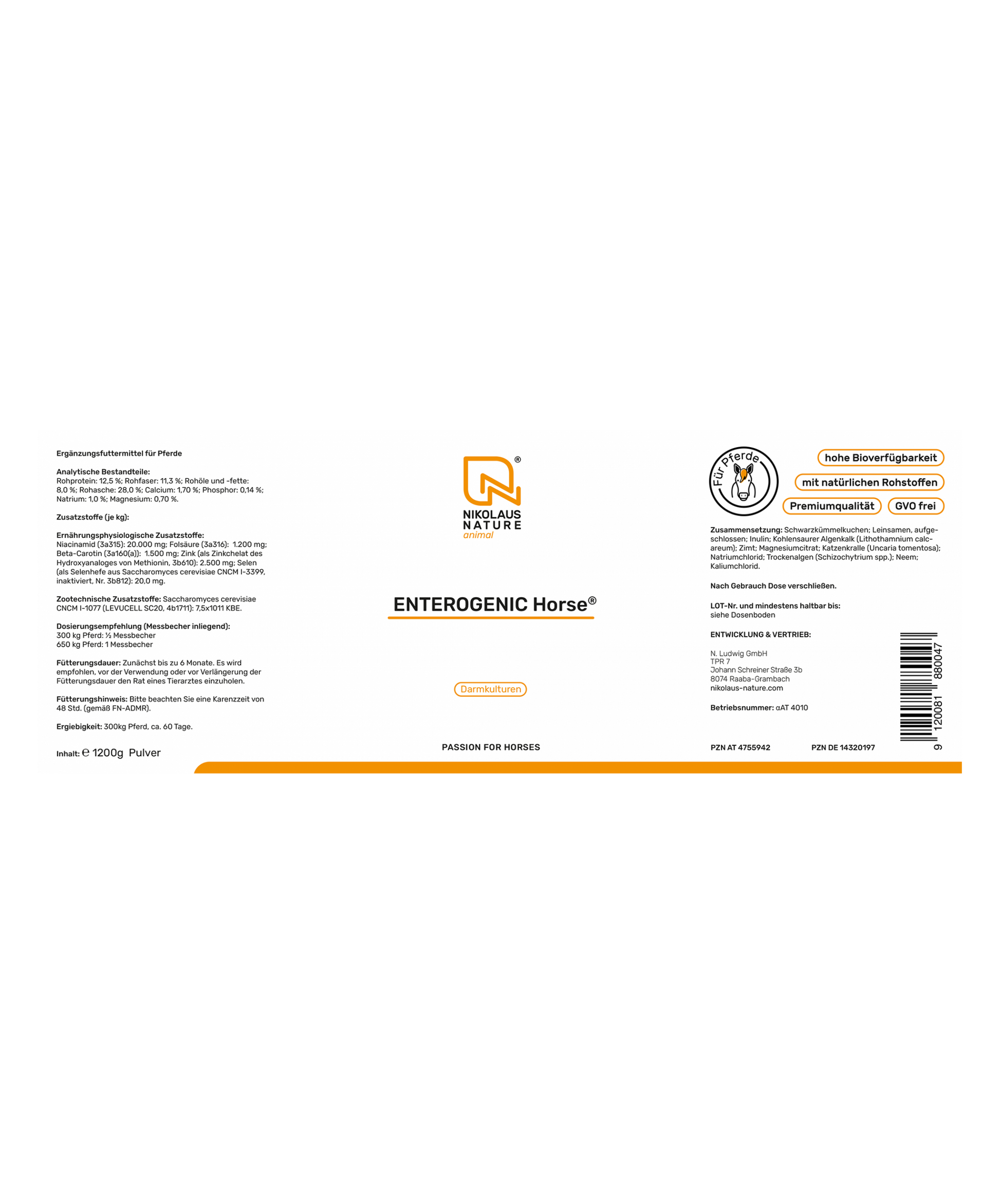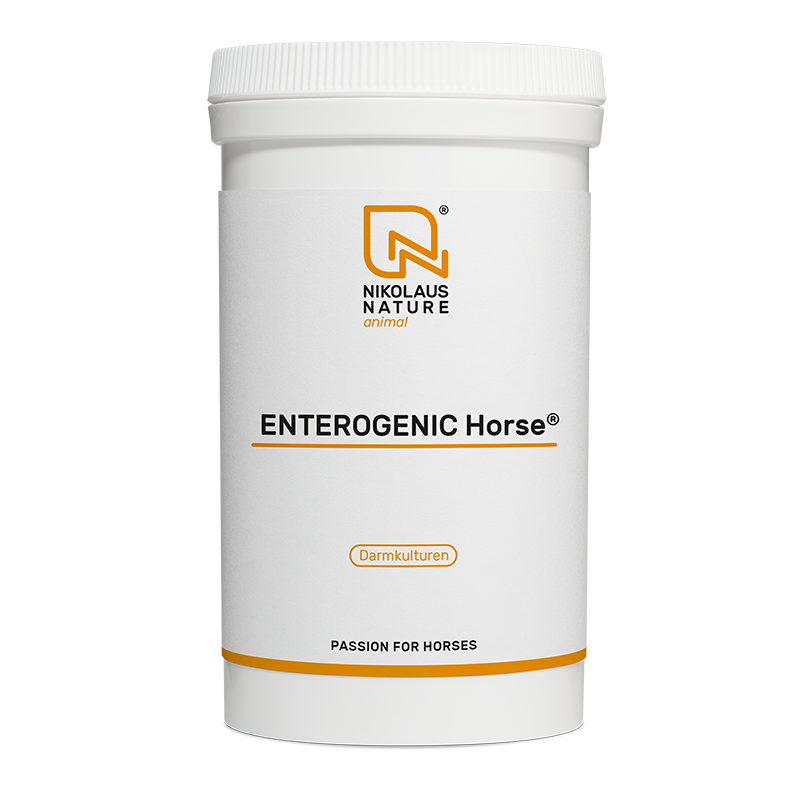 ENTEROGENIC Horse® supports natural digestion and a stable intestinal flora with a combination of probiotics and prebiotics as well as intestinal-active plant substances – ideal for horses with a sensitive digestive tract or after gastrointestinal stress.