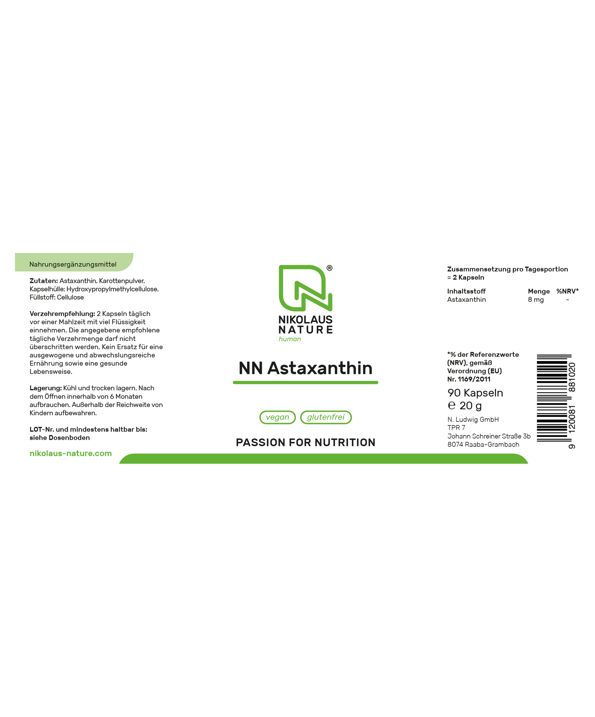 Astaxanthin belongs to the carotenoid family and is one of the most powerful natural antioxidants. This bright red compound is produced by certain algae—particularly the blood-rain algae Haematococcus pluvialis —under extreme conditions to protect themselves. We also harness this ability in our dietary supplements: Astaxanthin can help reduce oxidative stress and protect cells from free radicals.